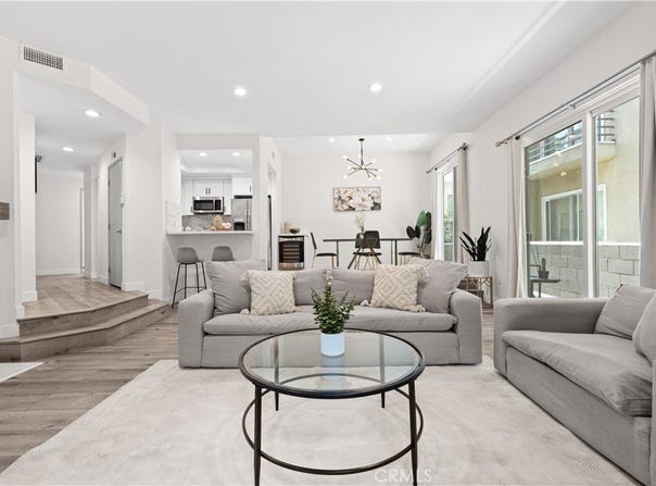 This sophisticated tri-level townhome offers the perfect blend of light, space, and modern design in a prime Culver City-adjacent location. Situated in a charming, gated six-unit building with low HOA dues, this front-facing residence shares only one wall and is filled with natural light throughout. Thoughtfully updated and completely turnkey, the home features soaring cathedral ceilings, expansive windows, rich wood flooring, and designer finishes that create a warm yet elevated aesthetic. The open-concept main level is ideal for both everyday living and entertaining, with a spacious living room, fireplace, dining area, and seamless access to multiple balconies - perfect for embracing an indoor-outdoor lifestyle. The updated kitchen is both functional and stylish, offering ample cabinetry and stainless steel appliances. On the entry level, two generously sized bedrooms each feature en-suite bathrooms and private balconies, providing comfort and privacy. The top level showcases a versatile enclosed loft - ideal as a third bedroom, office, or creative space - which opens to an enormous private patio that lives like an outdoor living room. With multiple balconies and expansive outdoor spaces throughout, this home offers a rare opportunity to enjoy both openness and privacy in one of the Westside's most convenient locations, just moments from Downtown Culver City's shops, restaurants, and vibrant energy.