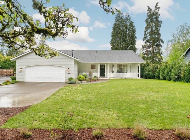 Bright and refreshed, this classic Mid-Century Ranch blends original charm, clean lines, and modern updates in a fantastic Washington County location on an 8,000+ sq foot lot. Natural light streams through abundant windows, highlighting the gorgeous hardwood floors and original wood cabinets in the kitchen that combine with the wood burning fireplace for a warm and cohesive family living area. The dining area flows directly to the backyard, where you'll find a covered patio, making al fresco dining a breeze. Enjoy the view of the large fenced yard from the kitchen window, perfect for play areas, pets and garden inspirations. Three good-sized bedrooms with ample closet space are complemented by a newly remodeled bathroom. The home is move-in ready with a new water heater and fresh paint throughout. An attached and extra deep 2-car garage has a designated laundry area, workshop space and easily accessible storage above. The additional covered side yard offers practical space for boats, garden implement storage and projects. There are several parks nearby and sidewalks throughout the quiet neighborhood that is close to shopping, restaurants, and Washington Square mall. It is an easy commute on Hwy 217 or side streets to Nike and the tech corridor. Check out this wonderful home in a delightful and desirable neighborhood! Open Sat. 4/18 from 11am-1pm.