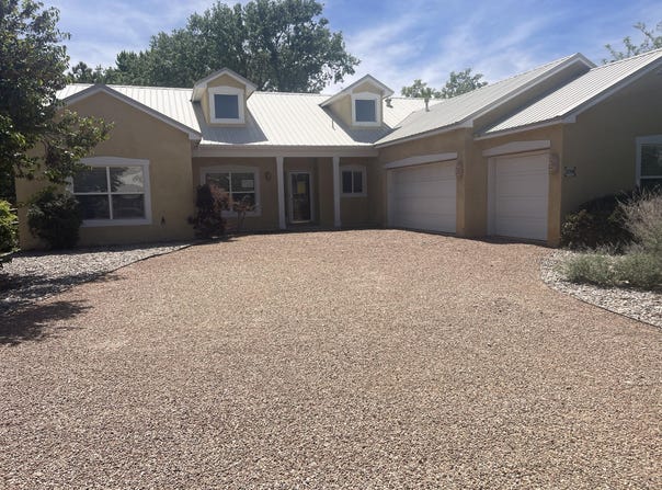Marvel at the breathtaking views from this well-kept single-level home, ideally situated on a cul-de-sac lot. Offering 3 bedrooms and 2 bathrooms, the home features refrigerated air, high ceilings, and a comfortable, open layout. The kitchen is nicely updated with tile countertops and includes a newer electric stove, refrigerator, and dishwasher, and flows seamlessly into the main living areas--all with views! The spacious primary suite includes a large walk-in closet, double sinks, and a generously sized walk-in shower. The beautifully landscaped backyard is low-maintenance with turf and an outdoor BBQ--perfect for enjoying morning coffee, grilling, or entertaining. Located near the Canyon Club, Kirtland AFB, Sandia Labs, hiking trails, and shopping, with easy access to I-40.
