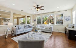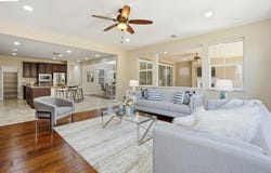 This contemporary Palmilla residence redefines flexible living, offering a sun-drenched interior that radiates warmth and modern elegance. Designed for a light-filled lifestyle, the open-concept layout features rich wood flooring, fresh designer paint, and large windows that invite abundant natural light into every corner of the home. At the heart of the residence, the chef's kitchen shines with granite countertops, stainless appliances, and an expansive center island tailored for hosting. Seeking a true multigenerational setup? The main level features a rare downstairs bedroom and full bath-an ideal space for guests, extended family, or a quiet home office. Upstairs, the expansive primary suite offers a spa-inspired bathroom featuring a dual vanity, soaking tub, separate shower, and a generous walk-in closet. Four additional bedrooms, a full bath, and a versatile den or office space provide flexibility for a variety of lifestyles. Outside, the shaded backyard retreat provides a private, low-maintenance sanctuary for effortless indoor-outdoor living. Experience the very best of Brentwood, perfectly positioned near award-winning schools, lush community parks, and premier dining.