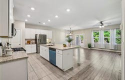 Welcome to your dream home in Lakecrest, an exclusive 55+ active adult community nestled near the shores of Lake Lanier. This like-new 2023 ranch home offers the perfect blend of peaceful surroundings, thoughtful upgrades, and an incredibly convenient location. One of the community's most unique features is its direct access to nature. From within the neighborhood you can walk to Lake Lanier. Just a 5-minute drive away is Lanier Park, where you can enjoy lakeside recreation, walking trails, picnic areas, and beautiful water views. The community itself is small and private, with only 77 homes backing up to protected Corps of Engineers property, creating a rare sense of privacy and a tranquil, nature-filled setting. Despite the peaceful surroundings, the home is conveniently located close to everything you need. You're just minutes from the shops, restaurants, and entertainment in Downtown Buford and Sugar Hill. For additional shopping and dining, both Cumming Marketplace and Mall of Georgia are nearby and approximately the same driving distance, offering endless retail, grocery, and restaurant options. Inside, the home features a bright open-concept floor plan where the kitchen, dining, and living areas flow seamlessly together and are filled with natural light throughout the day. At the front of the home, a private office or study with French doors provides the perfect space for working from home or enjoying hobbies. The upgraded kitchen is designed to impress, featuring white cabinetry, quartz countertops, and a large oversized island perfect for gathering and entertaining. Additional highlights include built-in stainless-steel appliances, a walk-in pantry, soft-close drawers, and a stylish hooded vent over the cooktop. The sunroom upgrade expands the living space even further, filling the home with natural light and creating the perfect spot to relax year-round. Step outside to the patio and walkout backyard, ideal for grilling, gardening, or simply enjoying the peaceful natural surroundings. Luxury upgrades continue throughout the home, including extended hardwood flooring throughout (no carpet), crown molding, and neutral designer finishes. The spacious owner's suite serves as a true retreat, offering a large walk-in closet and a spa-like bathroom featuring a stepless oversized frameless glass shower with rain head and custom tile. The main level also includes a private guest suite with its own full bathroom, ideal for visiting family or friends. Upstairs, you'll find a large loft, additional bedroom, and full bathroom, providing flexible space perfect for guests, hobbies, or an additional living area. Designed for easy living, the community offers low HOA fees that include lawn care and landscaping, allowing residents to enjoy a low-maintenance lifestyle without paying for unnecessary amenities. Schedule your private showing today and experience the peaceful yet convenient lifestyle waiting for you at Lakecrest.