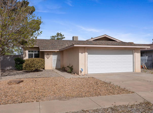 Freshly painted and updated custom-built mid-century ranch home. Board and batten, LVP floors, and a great floorplan for entertaining and every day life. Tons of storage, including a dedicated laundry room and ample closet space. The kitchen boasts a peninsula bar with seating for four, breakfast area, stainless steel appliances with double wall ovens, and counters and cabinets galore! Large windows fill the home with natural light and look out to a secure backyard with room for al fresco fun! Covered back patio and storage building. Lots of parking. Tranquil mountain views and incredible sunset vista over the west mesa. Close to the foothills, parks, paved Tramway Trail, open spaces, cycling lanes, trails, fine dining, and recreation.