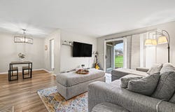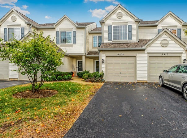 Stunning townhome, light and bright, three finished floors, impeccably maintained by its sole owner - this 2-bedroom, 2.5-bathroom townhome has everything! Gorgeous hardwood flooring throughout the main level, which boasts a large kitchen with stainless appliances and granite countertops with counter seating, walk-in pantry, spacious living room, powder room, and a formal dining space with access to the back patio through the large sliding doors. An open floorplan and picture windows flood the rooms with natural light. Neutral finishes throughout, including dark-stained stair rails with iron spindles to the second-floor loft space (potential third bedroom) and adjacent two bedrooms and two full bathrooms. The large primary bedroom features large windows, an ensuite full bath with double vanity, soaking tub and separate shower, and a well-organized walk-in closet. The fully finished basement features large space for entertaining, a home gym, entertainment or more, with ample storage space and is plumbed for an additional bathroom. Roof replaced in 2022. Furnace and AC replaced in 2025. Acclaimed D204 schools and close to highways, entertainment, and shopping!
