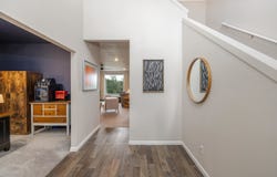 Beautifully maintained 3 bed, 2.5 bath home offering true main-level living with an open, airy feel. Cathedral ceilings create a spacious, inviting atmosphere and fill the main living area with natural light. The main floor features a generous primary suite with double sinks, a garden soaking tub, and separate shower, along with convenient main floor laundry. A cozy gas fireplace adds warmth to the living space. Upstairs includes two additional bedrooms and a full bathroom, creating a comfortable and functional layout. Thoughtfully updated with a new roof (2023), fresh interior paint, new main-level flooring, a new gas range and microwave, plus newer washer and dryer. Furnace serviced annually. All appliances stay, making this home truly move-in ready. Enjoy the landscaped front and backyard with blooming lavender, iris, clematis, two shade trees, vinyl fencing, and a 12x10 storage shed. Insulated 3-car garage and RV parking.