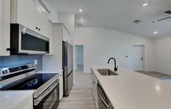 Step into modern elegance with this stunning new construction home featuring 3 spacious bedrooms and 2 beautifully designed bathrooms. Bathed in natural light, the bright white interior creates a clean, airy atmosphere that feels both luxurious and inviting. At the heart of the home, you'll find an oversized quartz countertop perfect for entertaining, meal prep, or casual dining paired with sleek, contemporary finishes throughout. The open layout flows seamlessly to a generous lanai complete with an outdoor kitchen, ideal for enjoying Florida living year-round. Situated on a desirable corner lot spanning 0.50 acres, this property offers both space and privacy. Built with durability in mind, it includes impact-resistant doors and windows for added peace of mind, along with an automatic sprinkler system to keep the landscaping lush and vibrant. This home is the perfect blend of style, comfort, and functionality come experience the touch of class and elegance for yourself.