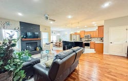 This fantastically cared-for 4-bedroom home truly has it all! Situated on an oversized lot with a privacy fence, mature landscaping, covered patio, hot tub hookups, and a large shed (approx. 3 years old), the outdoor space is perfect for relaxing or entertaining. The main floor features a spacious primary suite with private bath, and walk-in closet; main floor laundry and additional 1/2 bath plus, enjoy both formal living and dining rooms, plus a well-appointed kitchen with newer stainless steel appliances, recessed lighting, and a center island that opens to a cozy family room with fireplace. Upstairs offers 3 large bedrooms-2 with walk-in closets, plus large walk-in storage closet in hallway-a full bath with onyx shower, and additional storage. The finished basement includes a large family room with bar area and full-size refrigerator, plus room for storage or future expansion. Major updates include new windows (2024, lifetime warranty), new roof and gutters (2025), updated interior paint, and a tankless water heater (approx. 2 years old). Additional perks include zoned heating/cooling and underground sprinklers on a well. A rare find in a great neighborhood-move-in ready and meticulously maintained!
