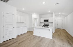 The GUTHRIE floor plan is a new single-story home featuring a spacious and flexible open-concept layout that blends the kitchen, living and dining areas to maximize interior space, and a nearby patio makes it easy to enjoy outdoor entertainment and leisure. Two bedrooms are tucked away to the side for optimal comfort and privacy, including the lavish owner's suite at the back of the home with a full bathroom and walk-in closet. Prices, dimensions and features may vary and are subject to change. Photos are for illustrative purposes only.