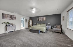 Thoughtfully designed with quality finishes and timeless character, this custom cottage-style home offers easy single-level living in a picturesque foothills setting. High-pitched vaults extend through the great room, kitchen, and dining areas, filling the home with natural light and an open feel. The kitchen features leathered granite countertops, a Bosch stainless appliance package, textured subway tile backsplash, walk-in pantry with appliance station, and custom alder cabinetry with a Scandinavian white stain. Wood floors and a floor-to-ceiling shiplap fireplace create warmth and architectural interest. The primary suite offers a peaceful retreat with dual 6' vanities, and a walk-in tiled shower. A well-designed floorplan with excellent storage, plus a 25' deep garage with an extra 10'x12' storage area. Enjoy a foothills community with pool, clubhouse, tennis, pickleball, and year-round trails walking distance to a community restuarant, coffee house and wine bar.