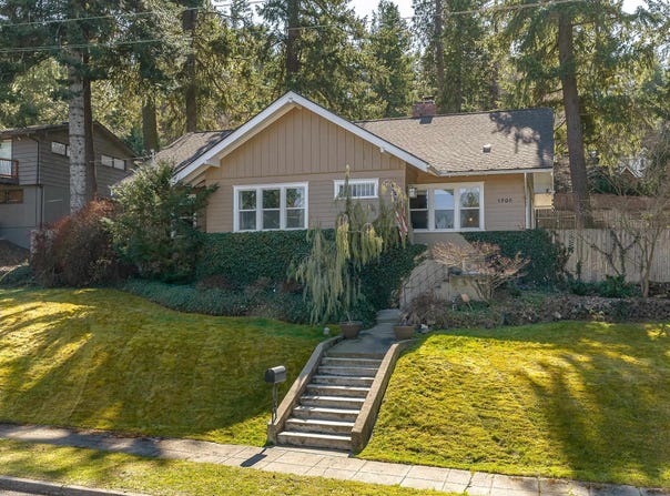 NORTHWOOD - Perched high above the Spokane Valley on majestic Woodland Park Drive, this one-owner custom Bruce Mathis estate offers elegance, comfort, and breathtaking views. With 3,590 sq ft on nearly half an acre, every detail reflects exceptional care and craftsmanship. The main-floor master suite features a fireplace, jetted tub, Travertine floors, and a massive walk-in closet. An exquisite kitchen boasts quartz counters, double ovens, induction cooktop, and an island with informal dining. Formal living and dining rooms showcase wainscot and Silhouette blinds, while the family room's wall of windows frames panoramic valley vistas. Rich Maple hardwoods, newer carpet, central vac, surround sound, and custom woodwork elevate the home. Entertain in the daylight basement with stone fireplace, wet bar, card room, and two large bedrooms. Outside, enjoy immaculate landscaping, an oversized finished 3-car garage, RV parking, 775 sq ft shop, large deck, and patio-all under a 40-year roof. Schedule a showing today!