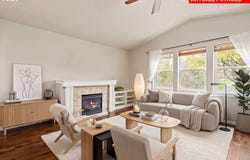 Charming one-level Mascord Craftsman featuring tall ceilings and expansive windows that fill the home with natural light. Thoughtfully updated throughout, this home offers new LVP flooring, fresh interior paint, stylish lighting, quartz countertops, and a brand-new architectural roof.The open-concept layout provides both comfort and functionality, with a formal living room, a spacious kitchen with dining area, and a welcoming family room complete with a cozy fireplace and sliding doors leading to the deck and backyard-perfect for indoor-outdoor living.The private en suite primary bedroom features a walk-in closet and a relaxing jetted tub, creating a true retreat.Set on over 5 flat, fully usable acres, the property is fully fenced and cross-fenced with attractive white vinyl fencing-ideal for animals or hobby farming. Enjoy the expansive deck, plus multiple outbuildings and a small barn for added versatility. Ample RV parking and a spacious 3-car garage provide plenty of room for vehicles, equipment, and storage.Experience the ease and comfort of one-level living in a peaceful, functional setting with room to grow.