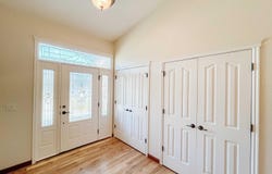 This beautifully crafted home, built in 2006 and lovingly maintained by its original builder, offers a rare blend of quality, character, and thoughtful design. Situated on a desirable corner lot with mature trees, the property boasts exceptional curb appeal and privacy. Inside, you'll find a highly sought-after split bedroom floor plan with the primary suite conveniently located on the main level. Durable and stylish colored concrete floors flow throughout the home, offering both longevity and a modern aesthetic. The stunning arched wood front door-imported from Bali-creates a memorable first impression. Entertain with ease in the spacious great room featuring custom built-in shelving and cabinetry, or retreat to the upstairs bonus room, perfect for a game or media space. Step outside to enjoy the inviting back patio complete with an outdoor fireplace and built-in BBQ, ideal for year-round gatherings. The home also features a unique attached garage setup with both a two-car and separate one-car garage, each with its own entrance for added convenience. This one-of-a-kind property combines craftsmanship, comfort, and functionality in every detail.