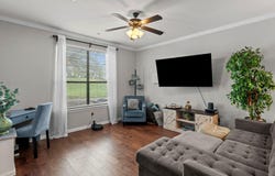 Located on a beautiful greenbelt and quiet cul-de-sac, this stylish and beautifully maintained home in the vibrant 55+ community of Heritage at Vizcaya offers the perfect blend of privacy, elegance, and lifestyle. A new roof installed in 2025 provides peace of mind, while the thoughtfully designed Fowler floor plan welcomes you with abundant natural light, soaring ceilings, and rich wood flooring throughout the main living areas. The open-concept layout allows the living, dining, and kitchen spaces to flow effortlessly, ideal for both everyday living and entertaining. The kitchen is a true centerpiece, featuring granite countertops, a spacious island with bar seating, classic white cabinetry with convenient pull-out drawers, stainless steel appliances, a striking dark gray subway tile backsplash, and a pantry for added storage. A private office with French doors and a tray ceiling offers a refined workspace or flex area. The primary suite is a relaxing retreat, complete with a dual vanity, a walk-in shower with seating, and a generously sized walk-in closet that conveniently connects to the laundry room. A well-appointed secondary bedroom with its own closet provides an ideal space for guests, thoughtfully positioned adjacent to a full bath for added comfort and convenience. Step outside to a spacious fenced backyard with a large wraparound porch, perfect for unwinding while enjoying tranquil greenbelt views. Beyond the home, Heritage at Vizcaya delivers an exceptional lifestyle with scenic walking trails, a state-of-the-art fitness center, bocce ball and pickleball courts, a heated resort-style pool, and a lively calendar of social events. With quick access to TX-130 and I-35, this home is just minutes from downtown Georgetown and Round Rock, and within 8 minutes of H-E-B and multiple major hospitals, offering both convenience and connection in a truly exceptional setting. More than just a place to live, this is the lifestyle you've been waiting for.