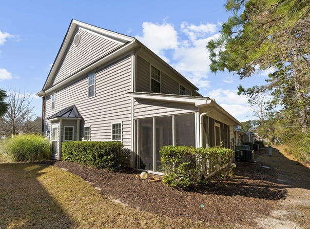 Welcome to this show-stopping end-unit townhome in the highly coveted Dunes West community, perfectly positioned just outside the gated section for easy access while still enjoying a sense of retreat. With serene wooded views behind you and expansive green space beside and across the street, this home lives large with a rare blend of privacy, openness, and convenience. From the moment you step inside, you're greeted by a sun-drenched, open-concept design that feels both elevated and inviting. Expansive windows dressed in wide-slat plantation shutters pour in natural light, illuminating the home's upscale finishes and thoughtful details. The living area is nothing short of stunning--anchored by custom light fixtures, floating shelves, and a striking Dimplex electric fireplace set againsta designer painted feature wall, creating a true statement space for relaxing or entertaining in style. The kitchen is a dream for both hosts and home chefs alike, featuring a massive granite island with a built-in wine refrigerator, stainless steel appliances, crisp white cabinetry, glass subway tile backsplash, and curated designer lighting--effortlessly blending beauty and function. Upstairs, the loft feels like it belongs in a design magazine, showcasing sophisticated box-style wood molding that creates a dramatic yet timeless grid pattern across the walls. This architectural detail adds rich texture and character, elevating the space into a refined flex area perfect for a chic home office, lounge, or creative retreat. The primary suite is a true sanctuary, complete with a cozy sitting area and a spa-inspired ensuite bath featuring an oversized tiled shower with a rain shower head, frameless glass enclosure, dual vanities, and a spacious walk-in closet. Two additional bedrooms and a beautifully appointed full bath complete the second level. Throughout the home, you'll find bamboo hardwood flooring, custom wrought iron stair railings, and bright LED lighting that enhances the modern, polished feel. Even the half bath makes a statement with its bold, patterned tile floor. Step outside to embrace Lowcountry living at its finest on the large screened-in porch overlooking a private, low-maintenance backyard with pavers and artificial turf--ideal for entertaining, unwinding, or enjoying quiet evenings. The two-car garage offers excellent storage and includes a utility sink for added convenience. Thoughtfully equipped with energy-efficient upgrades including a Rinnai tankless water heater, Halo whole-home water filtration system, surge protection for both the HVAC and electrical panel, and new roof in 2025-this home delivers both luxury and peace of mind. This is more than a home--it's a lifestyle. Stylish, low-maintenance, and ideally located just moments from shopping, dining, and everyday conveniences, this Dunes West gem truly stands out from the rest.