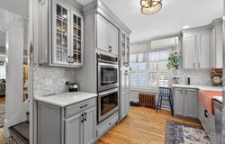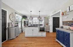 Homes like this are rarely available where every major upgrade has already been completed. This beautifully renovated u0026 meticulously maintained ranch offers true move-in-ready living just a block from Victor Crowell Park with duck pond, playground. From the moment you arrive, pride of ownership is evident with premium siding, Andersen 400 Series windows (2021), and excellent curb appeal. Inside, a custom mudroom features built-in bench seating, cubbies, and overhead storage. The bright living room offers oak hardwood floors, a large picture window, custom built-ins with glass shelving u0026 lighting and a gas fireplace. The stunning custom kitchen (2016) features heated herringbone porcelain tile floors, vaulted ceilings with four skylights, custom cabinetry, quartzite countertops, and high-end stainless steel appliances. A custom staircase with glass railing and built-in cabinetry with recessed TV adds a striking architectural feature. The main level offers three bedrooms and a beautifully renovated primary bath with porcelain marble walls, heated floors, dual vanity, and Steamist steam shower. The finished basement includes a large laundry rm w/quartz countertops u0026 cedar walk-in closet, storage/utility room with high-efficiency two-speed Trane HVAC (2021), and expansive family room with beverage bar, full bath, and egress window for flexible living or guest space. Fenced backyard with large patio, one-car garage, Turn-key living with exceptional craftsmanship throughout.