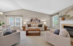 Welcome to this well-maintained townhome in a prime Lake St. Louis location. Just minutes from shopping, dining, schools, and parks, all within a fantastic neighborhood setting. Enjoy access to community amenities including a pool, basketball court, tennis court, and sidewalks throughout. Exterior maintenance is included, allowing you to spend less time on upkeep and more time enjoying your home. HOA dues are $210 per month along with a $475 annual assessment for subdivision amenities. Step inside to a spacious, open living and dining area. The inviting gas fireplace enhances the space and is a feature not offered in every unit. Generous windows brighten the space and create an open, airy feel. The kitchen offers granite countertops, stainless steel appliances, and a convenient breakfast bar. The powder room on the main level adds convenience. Upstairs features three bedrooms and two full bathrooms. Convenient second-floor laundry makes life easier. The spacious primary suite offers a flexible sitting area that works well for a reading nook, home office, or workout space. The private bath has a tub and separate shower plus a large walk in closet. Two additional bedrooms provide great space for family, guests, or office use. The finished lower level adds even more living space, complete with a projector and screen that make it ideal for movie nights or gaming. Additional highlights include a two-car garage, a concrete patio for outdoor enjoyment, and ample storage throughout. This home has been thoughtfully cared for and is ready for its next owner to move in and enjoy. Don’t miss this opportunity!