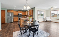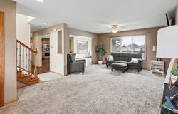 Welcome to this beautifully updated acreage just north of Pella in the desirable Wildwood Development. Nestled on 2.18 scenic acres, this property offers the perfect blend of privacy, space, and modern updates. You'll love arriving home on the brand-new driveway, surrounded by fresh landscaping and mature timber views that change beautifully with every season. This 4-bedroom, 3.5-bath home has been extensively updated and is move-in ready. Major improvements include a new roof and gutters in 2024, new septic system in 2020, new deck, new carpet, fresh paint throughout, and a remodeled kitchen featuring quartz countertops and updated finishes. Inside, the open main level is designed for both everyday living and entertaining. A soaring wall of two-story windows fills the home with natural light while framing breathtaking views of the surrounding timber. The main level also features a spacious primary ensuite with walk-in closet, convenient main floor laundry, and a warm, inviting sunroom perfect for enjoying morning coffee or watching the seasons change. The upper half-story offers a private bedroom suite with a loft area-ideal for guests, a home office, or a quiet retreat.